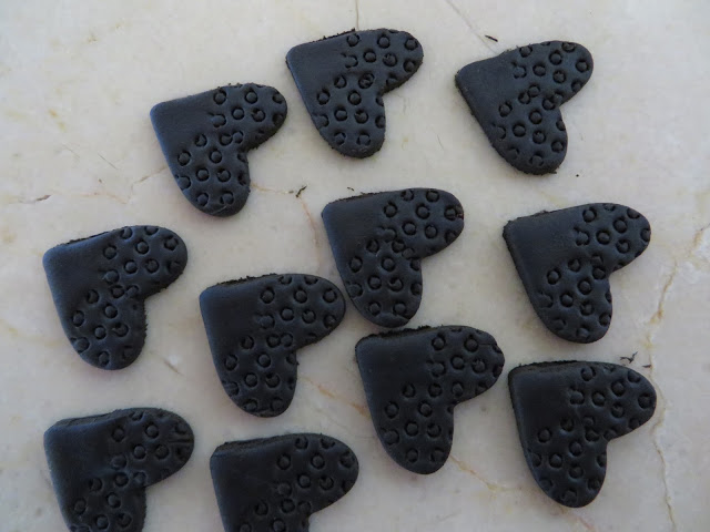 3. Roll and cut teardrop shapes from black fondant. Two for each cake pup.