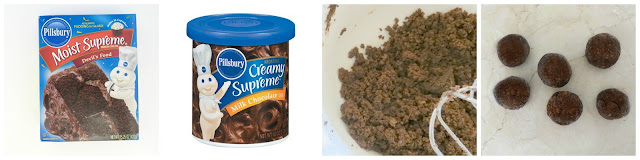 2. Add a 1/4 cup Pillsbury milk chocolate frosting and mix together with hand mixer. (If needed, add a little more frosting until it easily sticks together), and roll into cake balls.